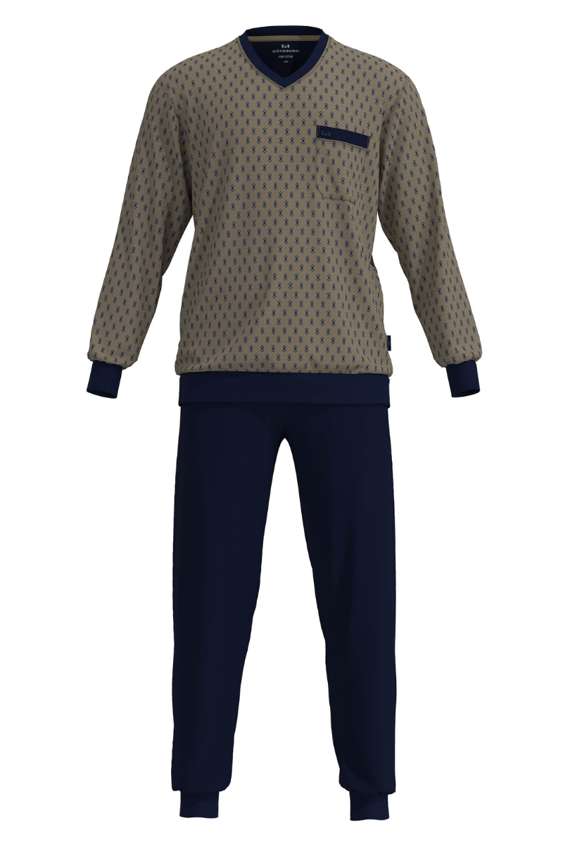Ανδρική Πυζάμα, V Λαιμόκοψη, Geometric Print, από 100% Βαμβάκι